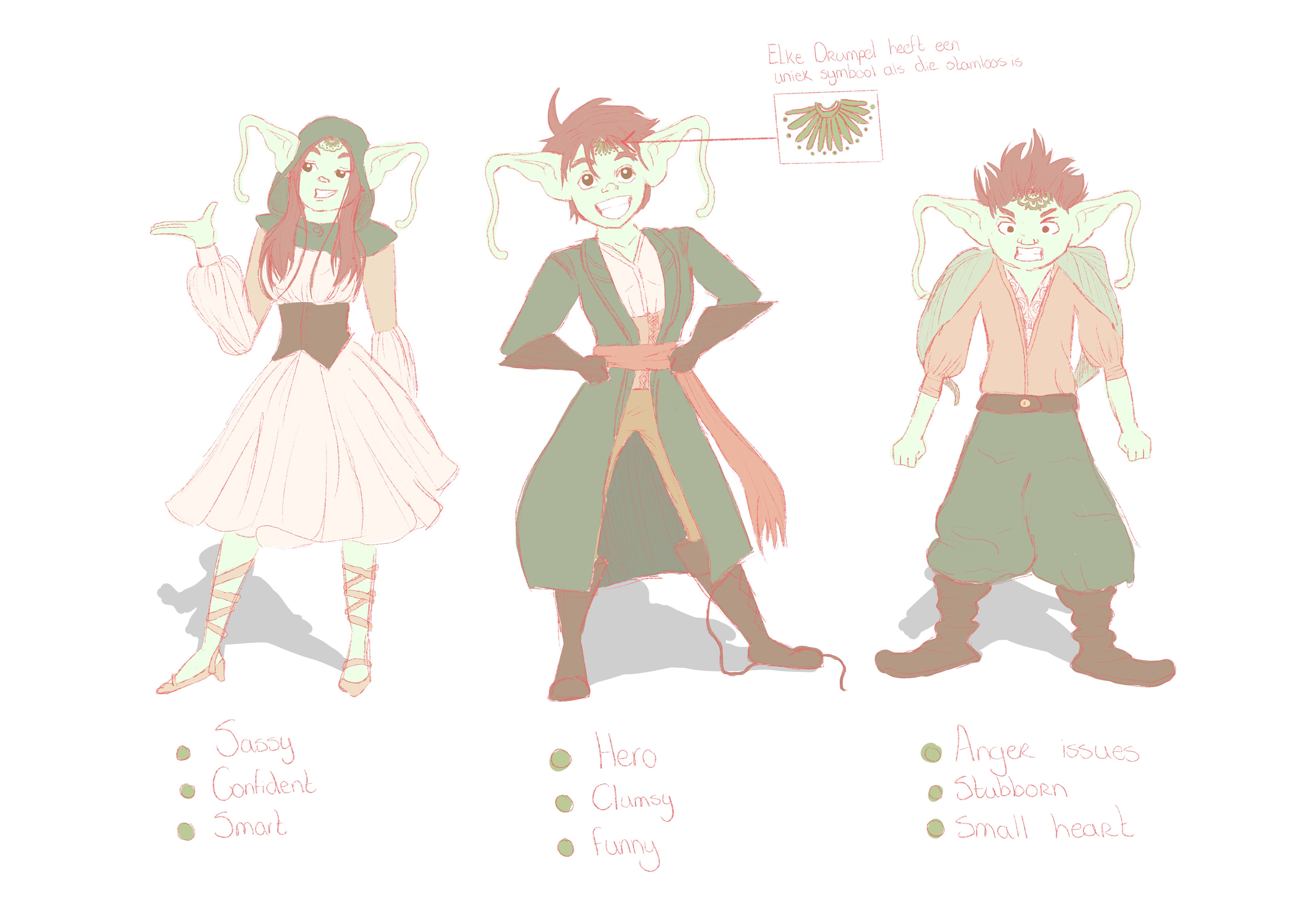 Tijdens mijn stage als illustrator heb ik mee mogen helpen aan het ontwerpen aan een karakter voor een collega zijn zelf geschreven verhaal. De eisen waren:"Trol, punt oren en groen". Wij mochten zelf verder ideeën bedenken die de opdrachtgever konden inspireren voor een eindwerk.